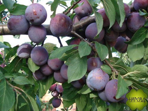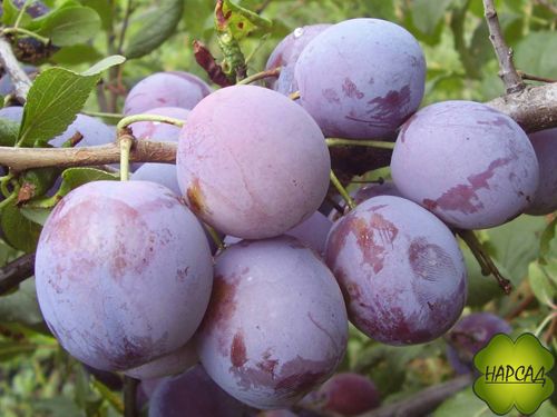 Плоды у этого сорта – крупные темно-фиолетовые шарики почти не сплюснутые с боков, около 4,5 см в диаметре, покрытые светлым восковым налетом. Мякоть у слив буро-желтая, тусклая, истекающая соком. Вкус у сливы очень приятный — сладкий, но не приторный, с лёгкой кислинкой.