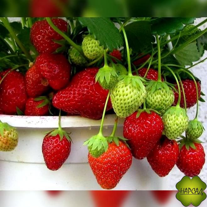 Ягоды клубники конической формы с тупым кончиком. Поверхность спелых плодов блестящая, ярко-красная с хорошо заметными семенами. Поэтому кажется, что на клубнике «загорается» большое количество желтых огоньков. Мякоть сочная, упругая. На срезе ягода светло-красная или розовая. Никаких пустот и белых вкраплений не наблюдается.