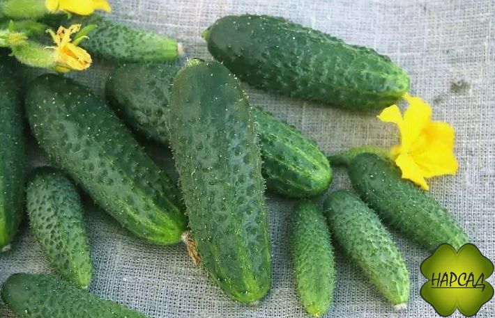 Кожица у огурцов тонкая, без горечи. Отличается красивым темно-зеленым цветом и выраженными бугорками светлого оттенка. Носики округлые, светло-зеленые, с небольшими лучиками такого же цвета, разбегающимися по поверхности огурца.