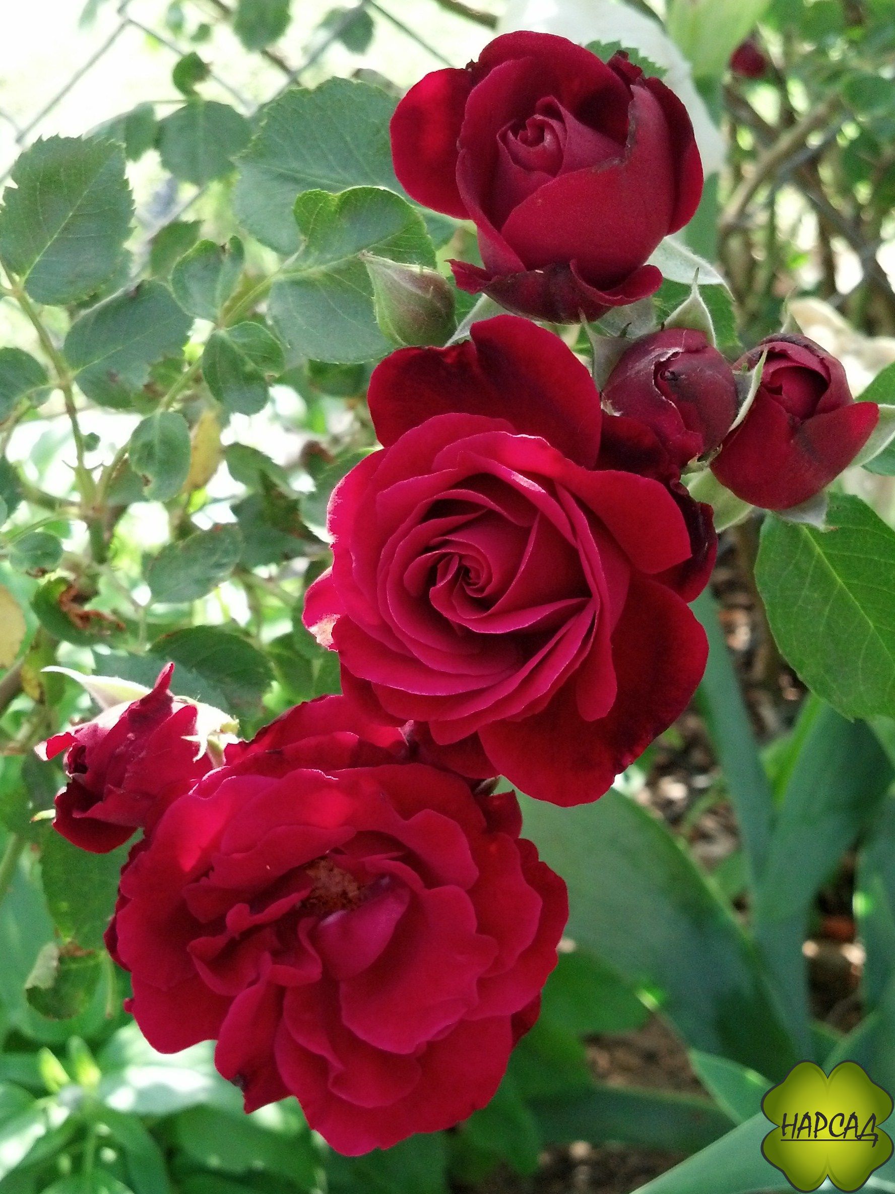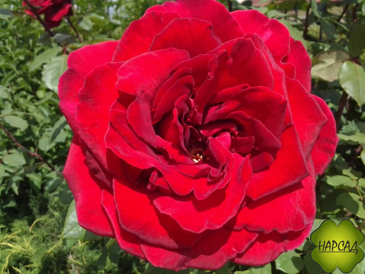 Удивительно красивый и яркий сорт плетистой розы с крупными махровыми чашевидными цветками. Цветет на побегах текущего года, обильно и продолжительно. Листья тёмно-зелёные, кожистые. Побеги коричнево-красного цвета.Куст сильнорослый, прямостоячий. Зимостойкий, выносливый сорт.