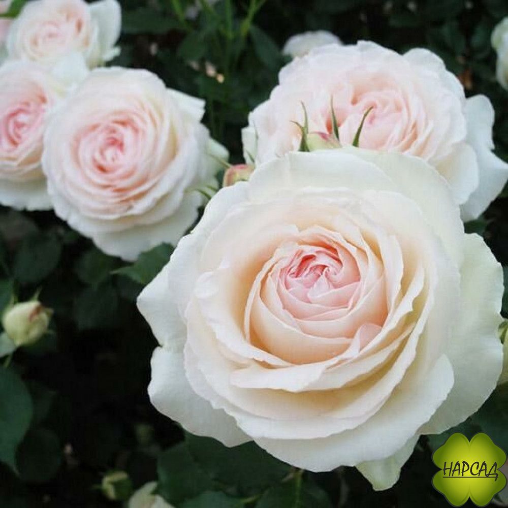 Почти белые лепестки переливаются нежным, пастельным розовым оттенком, который играет на солнце, меняясь от перламутрового до розово-кремового. Эта игра едва различимых градиентов придает цветкам особую нежность и утонченность