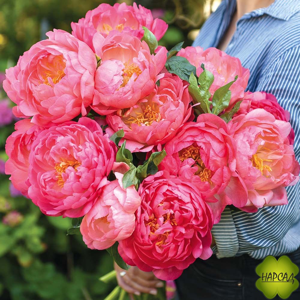 Пионы Пинк Гавайан Корал отлично подходят для срезки. Цветки развиваются полумахровыми и довольно крупными. Как правило, диаметр бутонов составляет около 16 см, но встречаются и такие экземпляры, бутоны которых имеют диаметр в 20-25 см. Стандартной является привлекательная коралловая окраска.