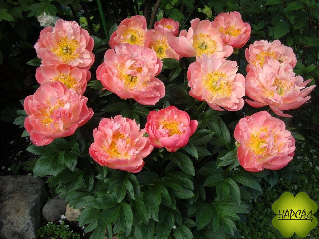 Оригинальные растения сорта Пинк Гавайан Корал произрастают довольно крепкими. Красивые многолетники относятся к категории травянистых. Высота ухоженных цветочных посадок чаще всего достигает средних значений. Зеленая масса привлекательных пионов представляется обильной. Густая кожистая листва характеризуется глянцевыми поверхностями и насыщенным темным зеленым окрасом. На посадках можно заметить большое количество соцветий.